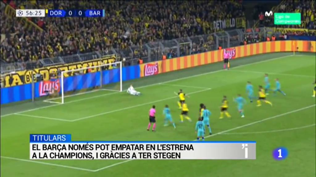 Ter Stegen es va convertir en el salvador d'un Barça que continua sense exhibir fora de casa el nivell al Camp Nou./ L'Espanyol també pensa única i exclusivament en competició europea: demà jugarà contra el FERENCVAROS hongarès./ Arriba la 31ena edició del Mercat de Música Viva de Vic, que comença avui i que durant 4 dies rebrà 650 professionals del sector.