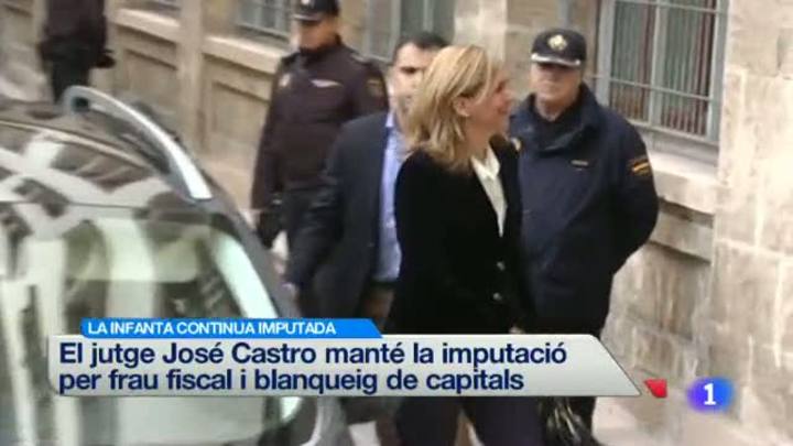 El jutge José Castro manté la imputació de la Infanta Cristina, en l'escrit amb que tanca la instrucció del cas Nóos. El jutge li imputa dos delictes frau fiscal i blanqueig de capitals. També manté imputat Iñaki Urdangarín, el seu exsoci Diego Torres i 13 persones més, de les més de 30 que havia imputat prèviament. Els advocats i la fiscalia ja han anunciat que recorreran la resolució judicial.