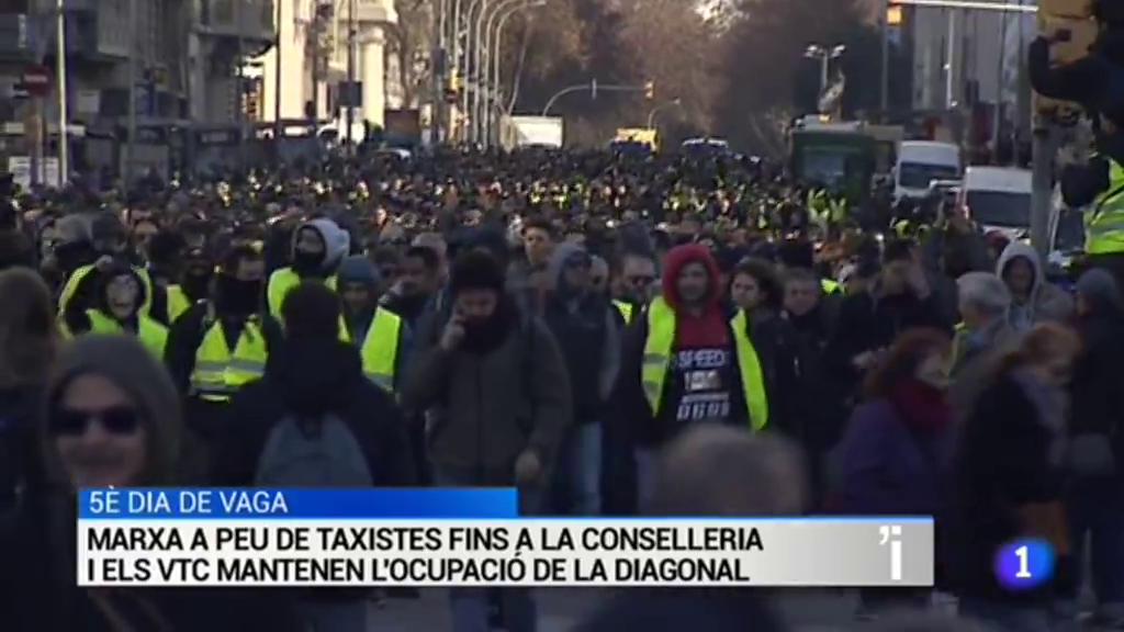 5è dia de vaga: Marxa a peu de taxistes fins a la Conselleria i els VTC mantenen l'ocupació de la DiagonalNova topada: Junts Per Catalunya i...