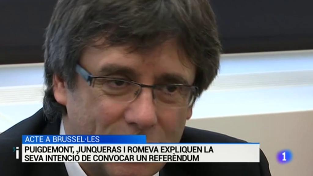 ACTE A BRUSSEL·LES. PUIGDEMONT, JUNQUERAS I ROMEVA EXPLIQUEN LA SEVA INTENCIÓ DE CONVOCAR UN REFERÈNDUM.