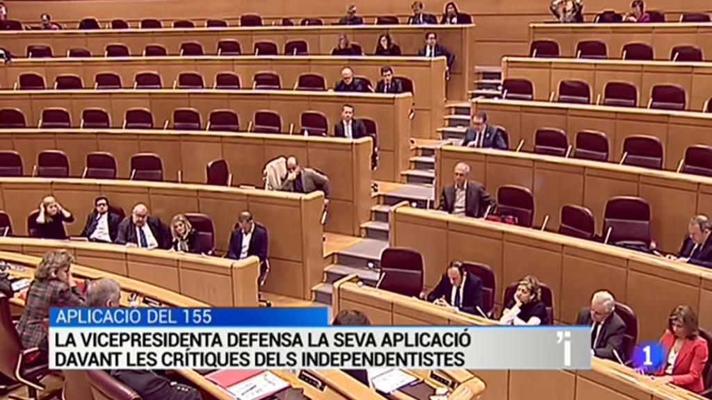 Soraya Sáenz de Santamaría ha defensat al Senat l'aplicació del 155 i els seus resultats. A més, ha definit el procés com un fake basat en la postveritat. Esquerra i PDCAT li han criticat les paraules en que va dir que havien escapçat l'independentisme. Ella ha replicat que precisament han estat aquests partits els que han escapçat la Generalitat.