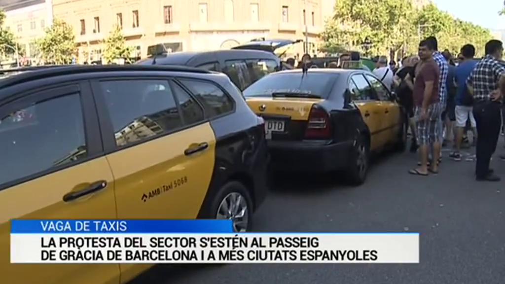 VAGA DE TAXIS: LA PROTESTA DEL SECTOR S'ESTÉN AL PASSEIG DE GRÀCIA DE BARCELONA I A MÉS CIUTATS ESPANYOLES