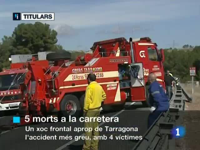 13/03/2011 00:24:50Dos xocs frontals a Tarragona i Girona porten la tragédia aquest cap de setmana a les carreteres catalanes. L'accident més greu ha estat aquest matí aprop de Tarragona, en un punt negre de la N-340, i ha causat la mort de quatre persones. A Girona va morir un jove de 25 anys la matinada de dissabte en colisionar contra un camiò.
