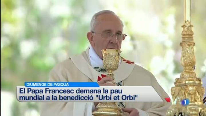 20/04/2014 00:24:12El Papa Francesc envia un missatge de pau en la Benedicció Urbi et Orbi de Diumenge de Resurrecció. El Pontífex ha demanat la pacificació de tots els conflictes de la terra ja siguin "petits, grans, antics o recents". El Papa anima a la reconciliació a països com Veneçuela i demana una via de pacificació i diàleg en els conflictes a Siria i Ucraïna, que eviti la violència. 150 mil fidels s'han congregat a la plaça de Sant Pere del Vaticà per rebre la benedicció solemne del Papa.