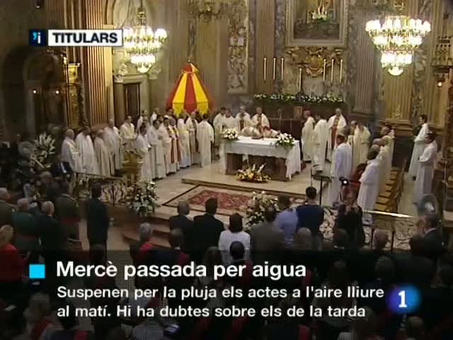 24/09/2011 00:20:16El portaveu del govern José blanco considera que l'anunci dels presos d'Eta de sumar-se a l'acord de Guernika és un pas important, però no definitiu en el final de la violència terrorista. El document que per primer cop suscriuen els presos etarres rebutja la violència i demana a la banda que deixi les armes./La pluja i el mal temps obliguen a suspendre aquest matí els actes programats a l'aire lliure de la Festa de la Mercé, a Barcelona. Només s'ha pogut mantenir la celebració dela Misa a la Basílica de la Mercé, a la que hi han assistit autoritats municipals i el President Mas./Visites guiades de forma especial, amb la possibilitat de tocar i de que tot s'expliqui de forma molt entenedora...és el que fan cada cop més alguns museos per ajudar als malalts d'alzheimer en fases no gaire avançades. Ajudar a recordar suposa, en aquests casos, dónar més qualitat de vida./Hi ha tres punts calents en l'assamblea de socis compromisaris del Barça 'aquesta tarda: si s'aprova o no la publicitat a la samarreta de Qatar Fundacion, si es prohibeix fumar al Camp Nou i si es tira endavant la Grada Jove. Una assamblea que es preveu que s'acabi abans de la cita a les 10 de la nit a l'Estadi, amb el Barça- Atlètic de Madrid./El director de l'Institut d'estudis Autonòmics, Carles Viver Pi-Sunyer, considera que un sistema basat en el concert econòmic no ha de presentar problemes jurídics, ni desde el punt de vista de la constitucionalitat, ni del dret europeu. Ho ha dit en declaracions a Televisió espanyola, al programa "Aquí parlem" que torna, aquesta nit a dos quarts de nou, pel Canal 24 hores, en una nova temporada. L'entrevista complerta amb el que va ser vicepresident del Tribunal Costitucional repasa diversos aspectes de l'estat autonòmic./El Centre de Cultura Contemporània de Barcelona, que des de fa un any obre un dilluns al mes per als malals d'alzheimer i els seus familiars. Fins ara no ho havien fet públic. Un equip de Televisió Espanyola ha entrat amb ells./