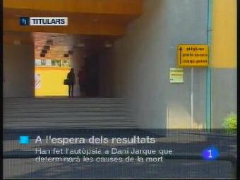 10/08/2009 00:17:12Aquest matí han fet a l'hospital de Florència l'autòpsia a Dani Jarque. Ha de determinar les causes de la mort sobtada del capità de l'Espanyol. Un cop es coneguin els informes repatriaràn el cadàver demà. Continuen les mostres de condol a Cornellà-El Prat per on ja han passat més de 10mil seguidors. Ahir, a les 9 de la nit, a la porta 21, 2mil seguidors van homenatjar Jarque, el dorsal 21 de l'Espanyol. La policia no descarta que ETA tingui presència organitzada a les Balears després de les explosions d'ahir a diversos locals d'oci. La informació que proporcionin els temporitzadors donarà pistes a l'investigació perquè serviran per saber quan van col·locar aquestes bombes. Desde divendres han mort sis persones a les carreteres catalanes. El darrer, el conductor d'un turisme que ha topar contra un camió a la C-35 a l'alçada de Maçanet de la Selva. La DGT ha començat una campanya de conscienciació.