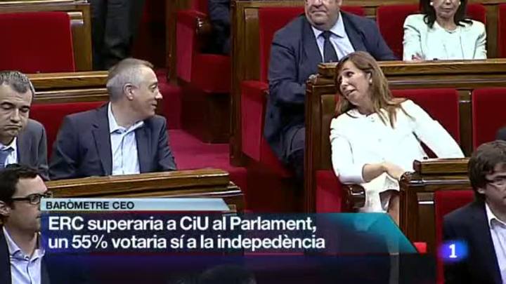 20/06/2013 00:25:45Esquerra Republicana superaria a Convergència i Unió si avui se celebressin eleccions al Parlament de Catalunya. Segons el baròmetre del Centre d'Estudis d'Opinió, Esquerra passaria dels 20 escons actuals a 38 o 39 i Convergència de 50 a un mínim de 36. Perdrien representants el PSC i el PP, es mantindria Iniciativa i en guanyarien Ciutadans i la CUP. El sondeig apunta que el sí en una consulta a la independència guanyaria però perd suport respecte el baròmetre que es va fer després de la manifestació de l'11 de setembre.