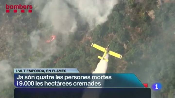 La mort d'un ferit greu eleva a 4 les víctimes dels incendis de l'Alt Empordà, que ja han cremat 9.000ha i n'han 13.000ha. El foc de la Jonquera...