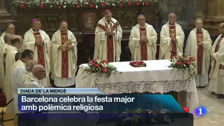 24/09/2013 00:26:40Barcelona celebra la diada de la Mercè, patrona de la ciutat. Aquest matí els carrers eren plens de gent gaudint de la festa i d'altres actes tradicionals, com ara la Missa celebrada pel cardenal arquebisbe Lluís Martínez Sistach en presència de les autoritats. Una missa que ha generat polèmica, perquè els grups municipals d'iniciativa i psc consideren que no hauria de formar part dels actes oficials de la festa major. L'alcalde de Barcelona, Xavier Trias, i el mateix Martínez Sistach, ja han respost.