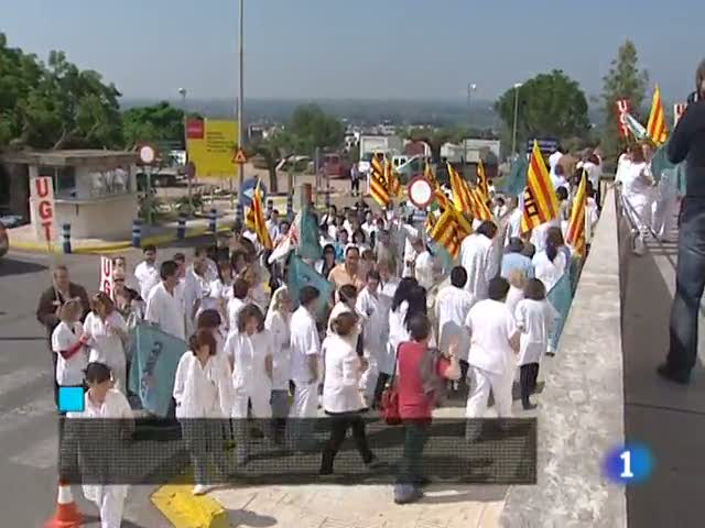 27/04/2011 00:25:39Continuen les protestes del personal sanitari malgrat l'anunci del govern de què ajornarà les retallades més dràstiques fins després de les eleccions municipals. Hi haurà un nou model de gestió de les llistes d'espera./El Senat aprova una moció d'ERC perquè el govern pagui a la Generalitat els diners del fons de competitivitat. El PSC va més enllà: Joaquim Nadal insta la Generalitat a dur Zapatero als tribunals. /Sensibilització contra el sorol: la nova llei antitabac enfronta restauradors i veïns./Els TGV enllaçaran Barcelona i França a finals del 2012./A Madrid ja està tot gairebé llest perquè Reial Madrid i Barça es tornin a veure les cares, avui a l'anada de les semifinals de la Champions. /El Barça no estarà sol a Madrid: més de 3.500 seguidors blaugrana animaran l'equip al Santiago Bernabéu. / El Barça Borges d'handbol haurà d'esperar com a mínim una jornada més per proclamar-se campió de lliga./L'escriptora barcelonina Ana Maria Matute ha rebut el premi Cervantes 2010