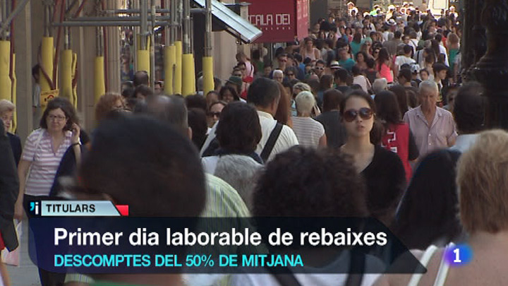 Bona afluència de públic en el primer dia laborable de les rebaixes d'estiu. La confederació de comerç calcula que la facturació arribarà als 800 milions d'euros.