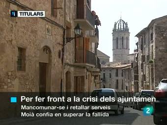03/08/2011 00:18:25La tempesta financera sobre Espanya obliga Zapatero a convocar una reunió d'urgència amb la Vicepresidenta Salgado i el ministre José Blanco. Avui la prima de risc espanyola s'ha tornat a disparar, però després s'ha moderat./Els municipis amb problemes financers proposen mancomunar-se i retallar serveis per fer front a la situació. Moià, el primer ajuntament de Catalunya que s'ha declarat en fallida, confia en poder trobar una solució en 15 dies./Les obres a l'estació de Sants de Barcelona interrompran des de demà el tram ferroviari fins Bellvitge i l'Hospitalet. Aquesta actuació afectarà totes les linies de rodalies i els trajectes poden augmentar fins a 40 minuts./Catalunya és la Comunitat autònoma on més creixen els insolvents. Han arribat als jutjats 380 concursos de creditors, un 6-i-mig % més que ara fa un any. 59 són casos de famílies en fallida... Girona és la demarcació on més han crescut les insolvències. En canvi, a Tarragona, s'han reduit lleugerament./Avui ha trascendit que l'escriptor i professor universitari Alfred Bosch ha acceptat encapçalar la llista d'Esquerra, una proposta que li ha fet el futur president del partit, Oriol Jonqueres./A Barcelona, prop d'un centenar d'indignats s'han concentrat aquesta tarda a la plaça de Catalunya per donar suport als indignats de Madrid./Un jove de 19 anys ha mort atropellat per un autobus aquesta matinada, a l'avinguda Diagonal de Barcelona. El noi viatjava amb un grup d'amics en un nitbus que es dirigia a Sant Feliu de Llobregat. La Guàrdia Urbana investiga el cas, que ja està en mans d'un jutjat de Barcelona./Fins el 27 d'agost estarà tancat el servei ferroviari a l'estació de Sants de Barcelona. La causa son les obres de cobriment de les vies dels accessos sud. Serà el tall ferroviari més gran fet mai a Catalunya i suposarà la modificació d'horaris i recorreguts de les línies de Rodalies i Regionals./També es reparen els túnels del Bruc, a l'autovia A-2. Avui han començat les obres de millora d'aquesta via./La Generalitat intenta combatre des de fa 2 anys el temut cargol poma. Una espècie originària de Sudamèrica que es menja els brots d'arròs. De mometn ja s'han invertit més de 3 milions d'euros... Ara la fiscalia de Tarragona investiga si una empresa dedicada a la importació i l'exportació d'animals exòtics de l'Aldea és la responsable d'introduïr el cargol poma al Delta de l'Ebre./El que ha disminuit força en el que portem d'estiu és el nombre de meduses a les platges catalanes./El Reial Madrid s'ha passejat aquest migdia en el primer partit de la gira asiàtica./ l'Espanyol ha sortit aquesta tarda cap a Sevilla on demà jugarà el Memorial Antonio Puerta. Pochettino ha convocat Carlos Kameni per primera vegada després de les negociacions fallides entre el camerunès i la Roma./còrdoba escollida per ser la seu de les semifinals de la Copa Davis./