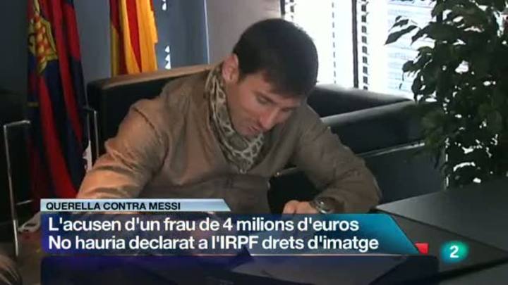 12/06/2013 00:26:23La Fiscalia de delictes econòmics acusa Messi de defraudar 4 milions d'euros. Avui el fiscal ha presentat una querella contra el "crack" argentí i el seu pare per haver comès un presumpte frau en la declaració de la renda. Segons l'escrit de la fiscalia, el jugador del Barça hauria deixat de declarar els guanys obtinguts en concepte dels drets d'imatge durant els anys 2007, 2008 i 2009.