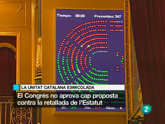 La unitat catalana esmicolada. El Congrés no aprova cap proposta contra la retallada de l'Estatut. Conflicte dels controladors. El govern amenaça...