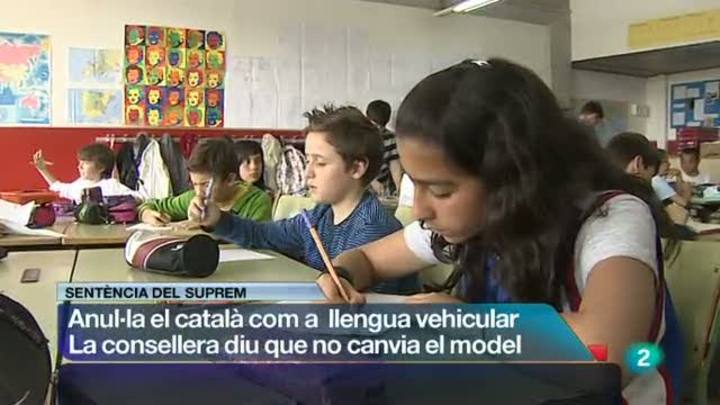 26/06/2012 00:29:16El català, torna a ser objecte d'una sentència polèmica. El tribunal Suprem ha anul.lat avui diferents articles d'un decret de la Generalitat que estableix que el català ha de ser la llengua d'expressió a les activitats de les escoles. La sentència considera que s'exclou el castellà. La conselleria d'ensenyament, fa encara no una hora, ja ha respós. Som on èrem, ha dit la consellera, i la Llei d'Educació de Catalunya ens ampara per seguir amb el mateix model.