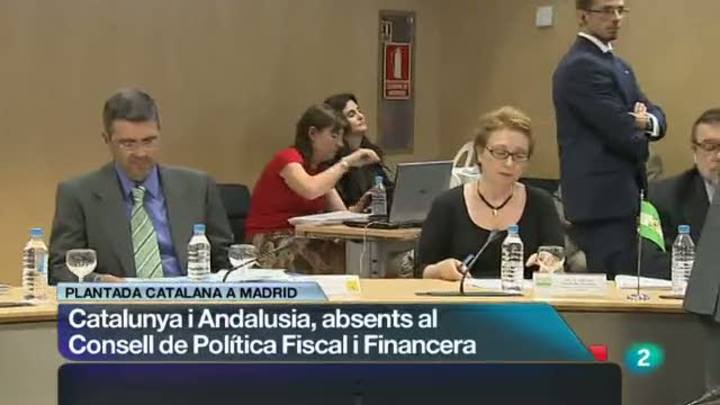 31/07/2012 00:18:10Plantada sense precedents del govern català a Madrid. El conseller d'economia Andreu Mas Colell no ha assistit aquesta tarda al Consell de Política Fiscal i Financera perquè està en desacord per les imposicions de l'executiu central. A l'espera d'una reacció de Madrid, el govern català diu que no té por de represàlies./7.500 entitats socials concertades alerten del risc de desatendre els usuaris si no cobren les subvencions. La Generalitat reitera que no pot pagar-les i l'oposició força una diputació permanent i demana la compareixença dels consellers Mas-Colell i Cleries./El claustre d'un finca privada de Palamòs no és romànic autèntic. Els experts de la Generalitat conclouen que és del segle XX. Tot i això, se'l declara bé cultural d'interès local perquè conté peces antigues./ Les medalles no arriben: la delegació Espanyola als Jocs Olímpics de Londres continua sense aconseguir-ne cap. I això que Ander Elosegi l'ha fregat en piragüisme. L'equip de bàsquet ha guanyat i el de waterpolo ha perdut amb polèmica./
