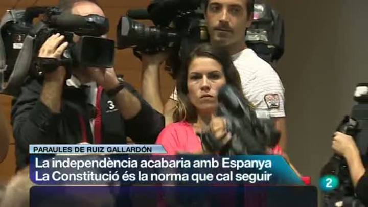 08/10/2012 00:24:37La independència de Catalunya significaria acabar amb Espanya. Ho ha dit aquesta tarda a Barcelona el ministre de justícia, Alberto Ruíz Gallardón, davant empresaris catalans. ..Assegura que una Espanya sense Catalunya seria una Espanya fora del euro. Ruiz Gallardón no ha deixat clar què faria el govern espanyol si a Catalunya es convoca un referèndum, pero ha remarca que la Constitució és una norma que s'ha de seguir i respectar.