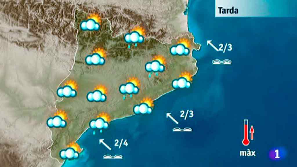 Aquesta tarda seguirem amb aquesta inestabilitat. No es descarten pluges febles i intermitents a la costa, per bé que a mida que avanci la tarda la pluja serà molt menys probable. En canvi augmentarà el risc de plugims a la serralada prelitoral. També poden caure ruixats al Pirineu i a les comarques de l'interior de Girona. Les temperatures lleugerament més altes que no as ahir.