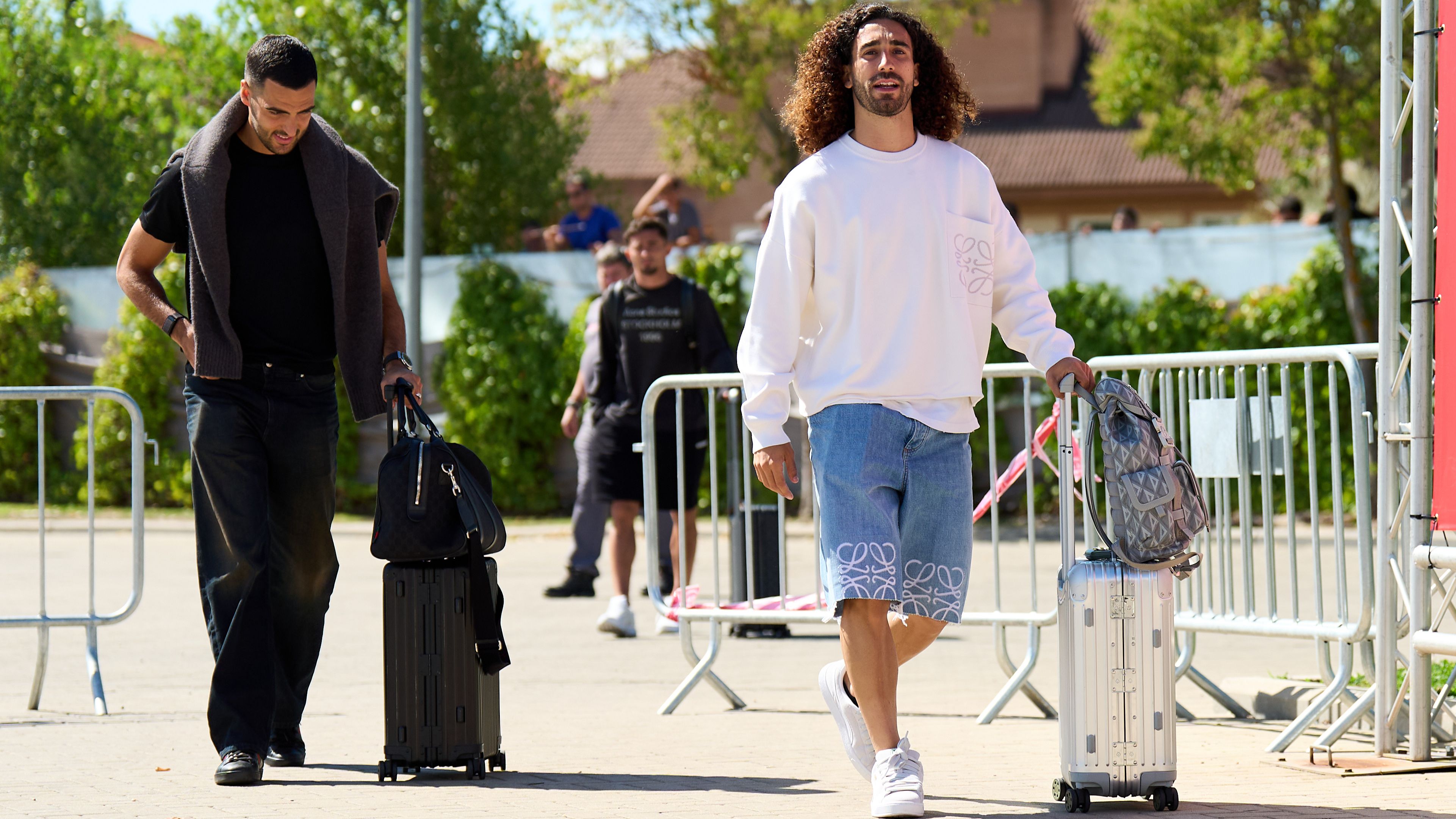 Cucurella (d) y el centrocampista Merino (i) a su llegada a la concentración de jugadores de la Selección española en la Ciudad del Fútbol de Las...