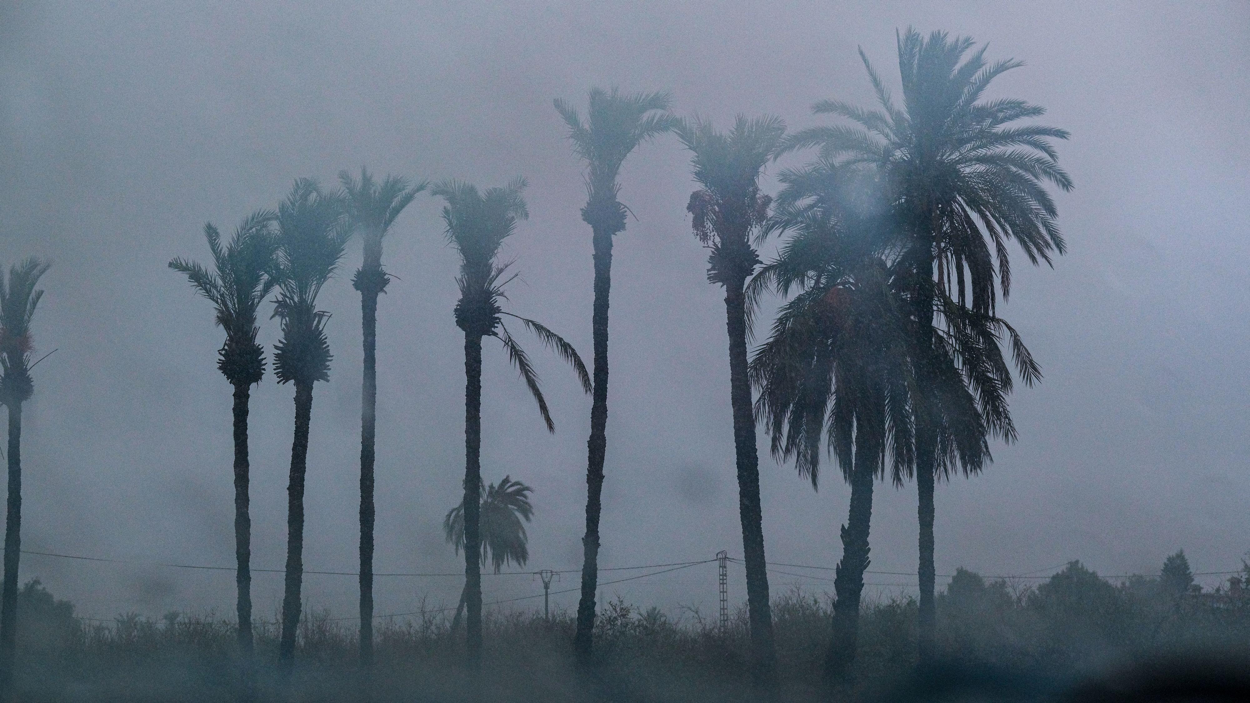 La tormenta de este jueves en un palmeral de La Foia, en Elx / Elche