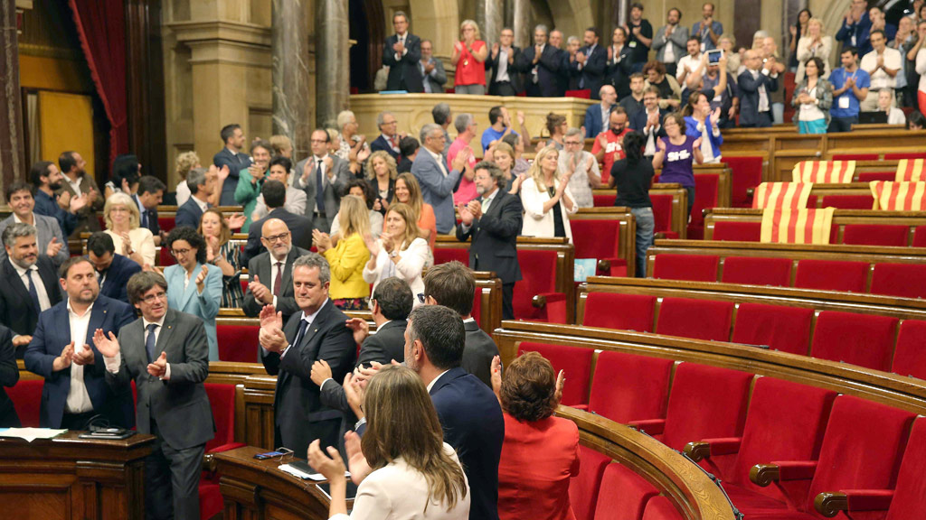El Parlament de Cataluña vivió este miércoles una jornada maratoniana protagonizada por broncos debates entre los grupos parlamentarios. La Mesa admitió a trámite la ley del referéndum, para horas más tardes, aprobarla, con los 72 votos a favor de Junts pel Sí y la CUP, la abstención de Catalunya sí que Es Pot y la ausencia del PPC, PSC y Ciudadanos. Ya de madrugada, el Parlament admitió a trámite la ley de transitoriedad jurídica por la que Cataluña podría declarar la independencia en 48 horas.