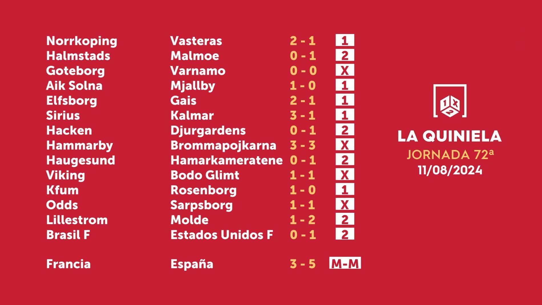 Sorteo de la Quiniela del 13/08/2024 - Jornada 72