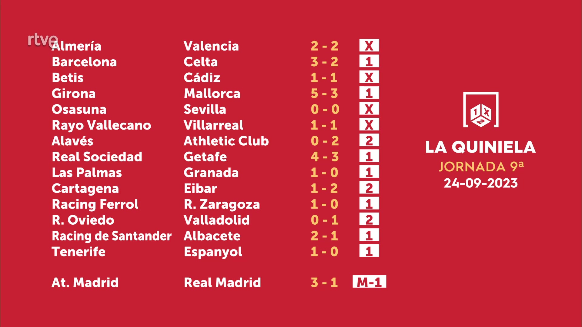 Sorteo de la Quiniela del 26/09/2023 - Jornada 9