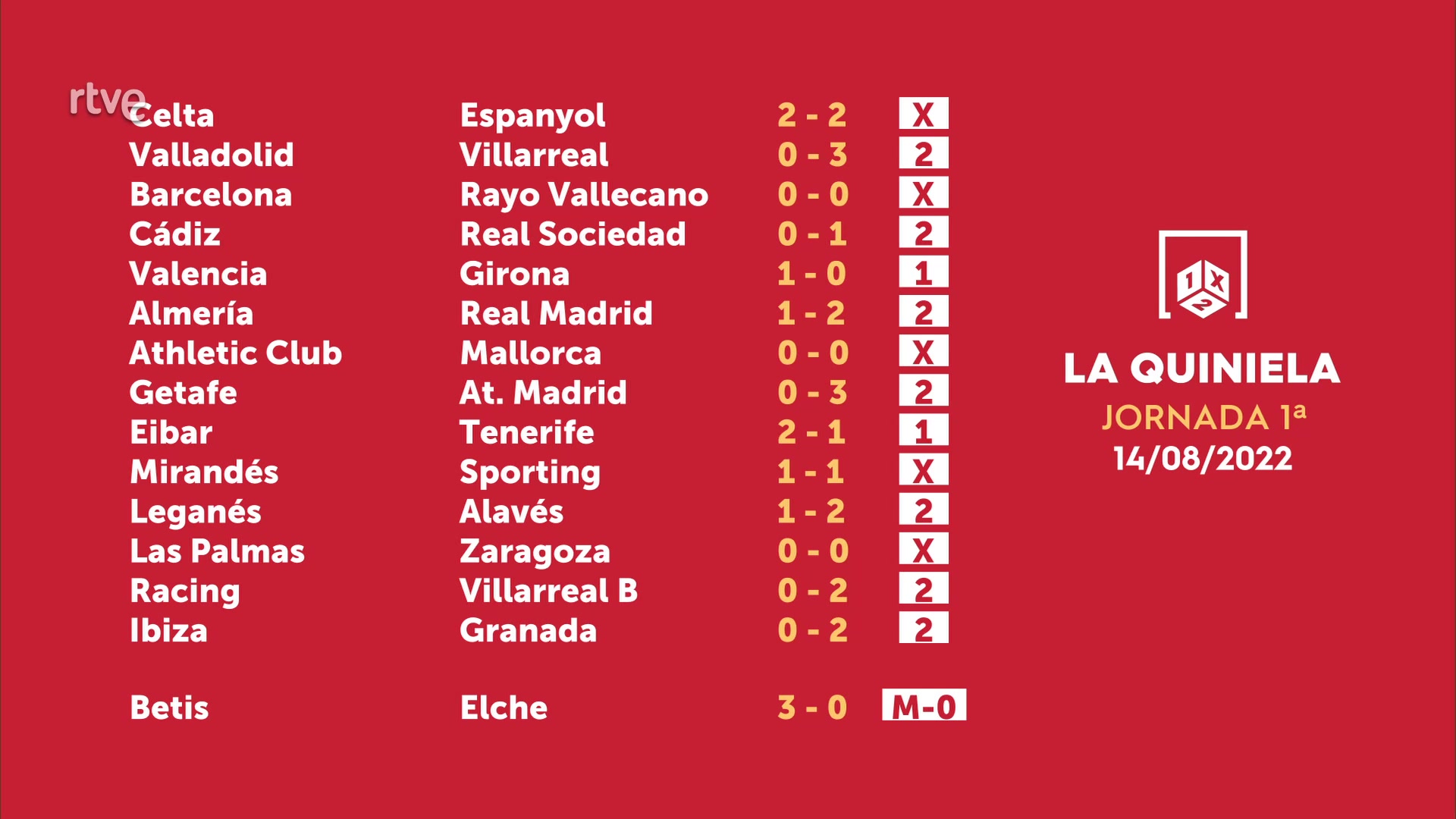 Sorteo de la Quiniela del 16/08/2022 - Jornada 1
