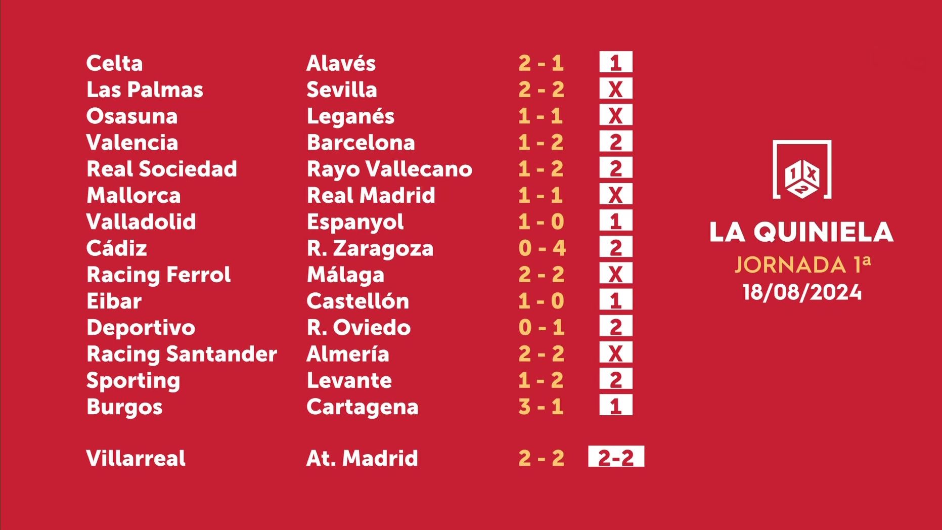 Sorteo de la Quiniela del 20/08/2024 - Jornada 1