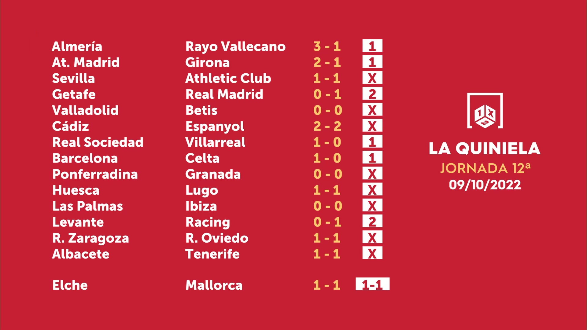 Sorteo de la Quiniela del 11/10/2022 - Jornada 12