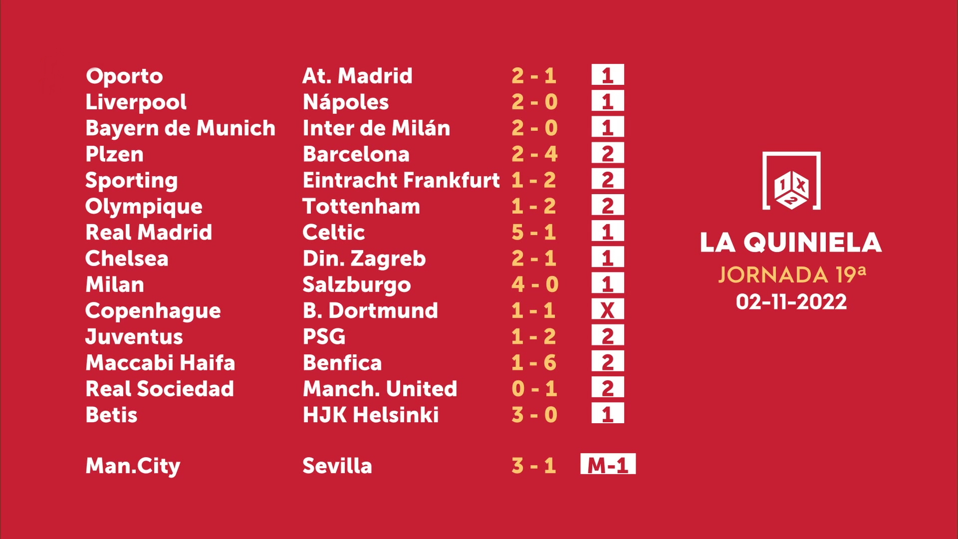 Sorteo de la Quiniela del 04/11/2022 - Jornada 19