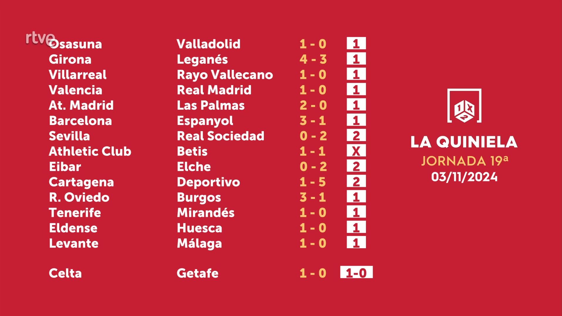 Sorteo de la Quiniela del 05/11/2024 - Jornada 19