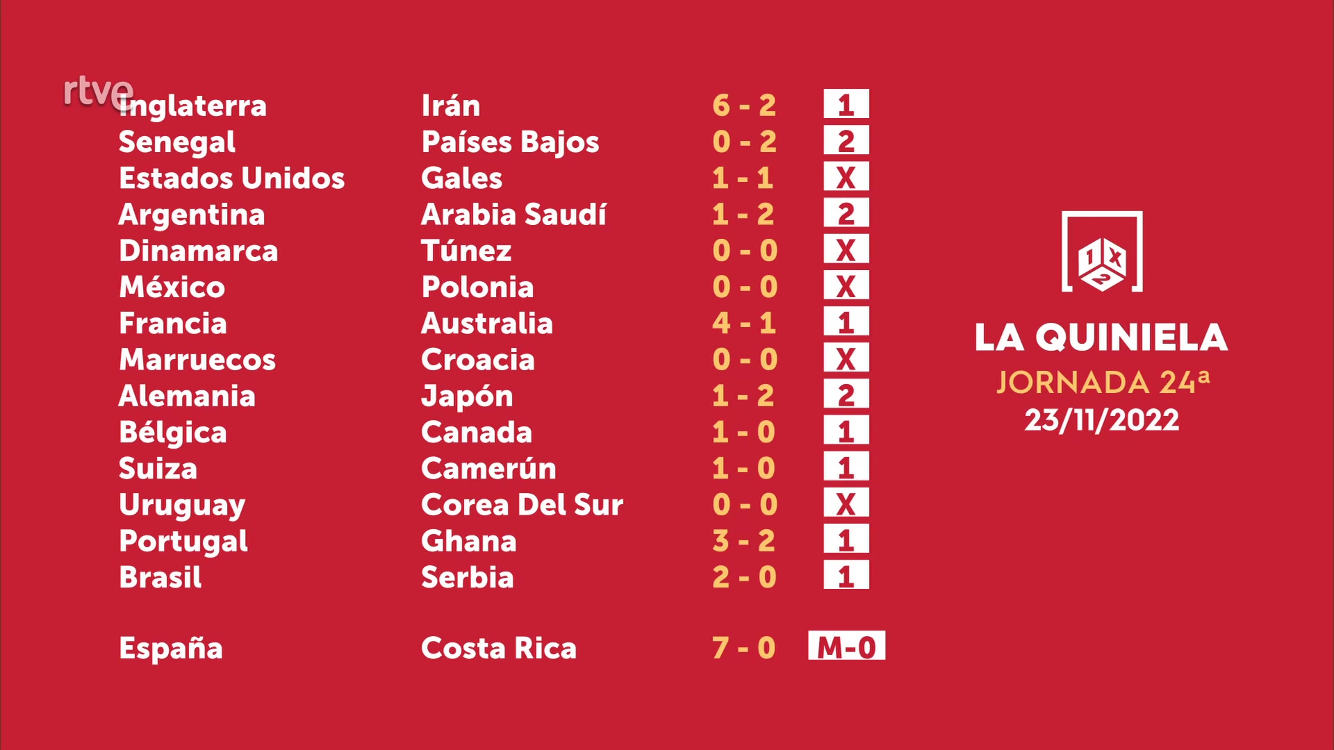 Sorteo de la Quiniela del 25/11/2022 - Jornada 24