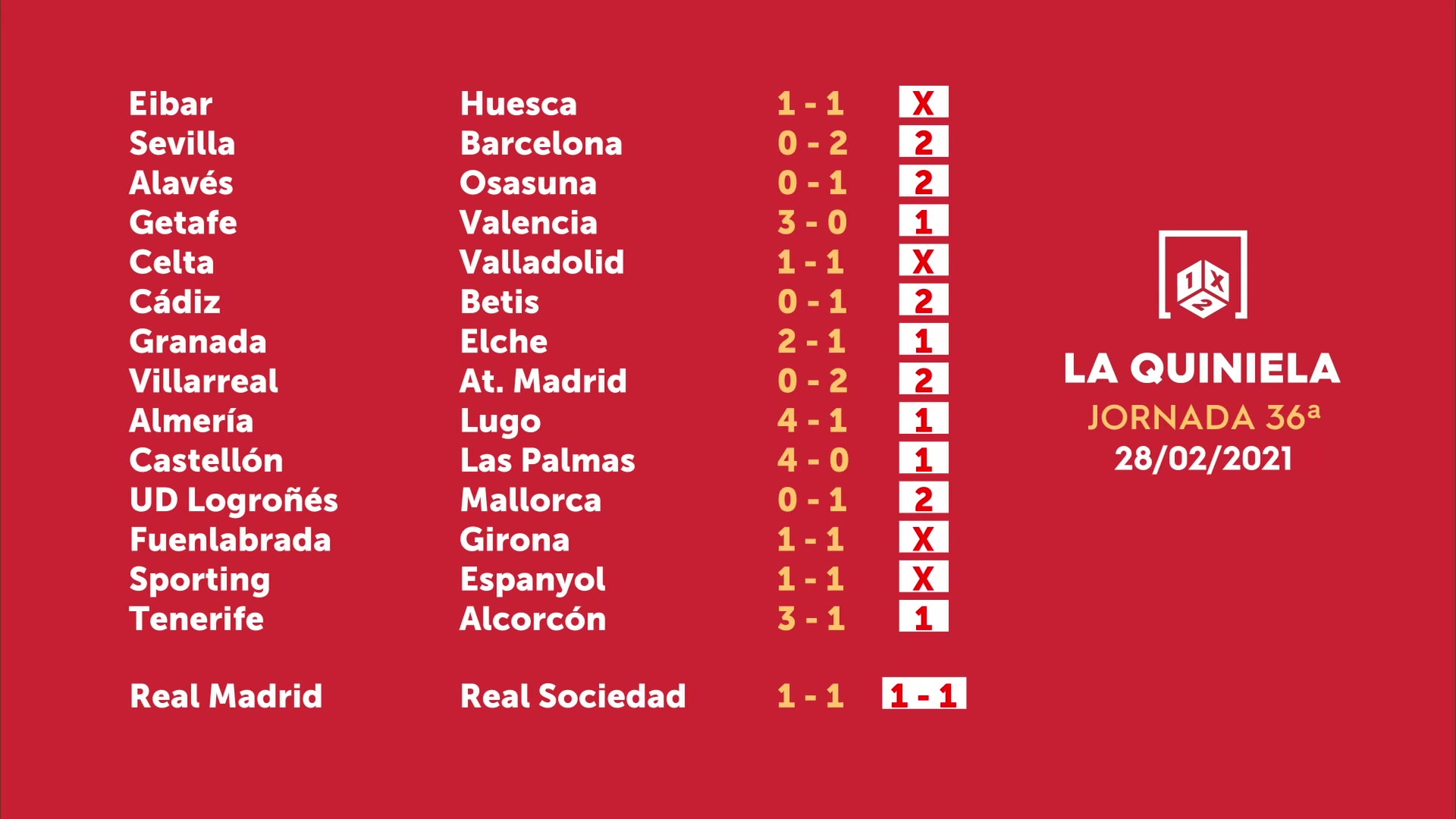 Sorteo de la Quiniela del 02/03/2021 - Jornada 36