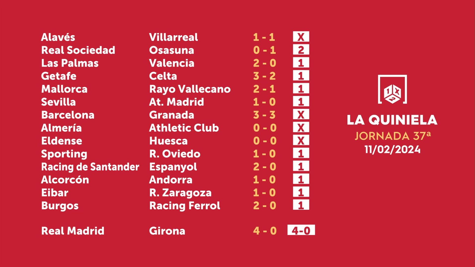 Sorteo de la Quiniela del 13/02/2024 - Jornada 37