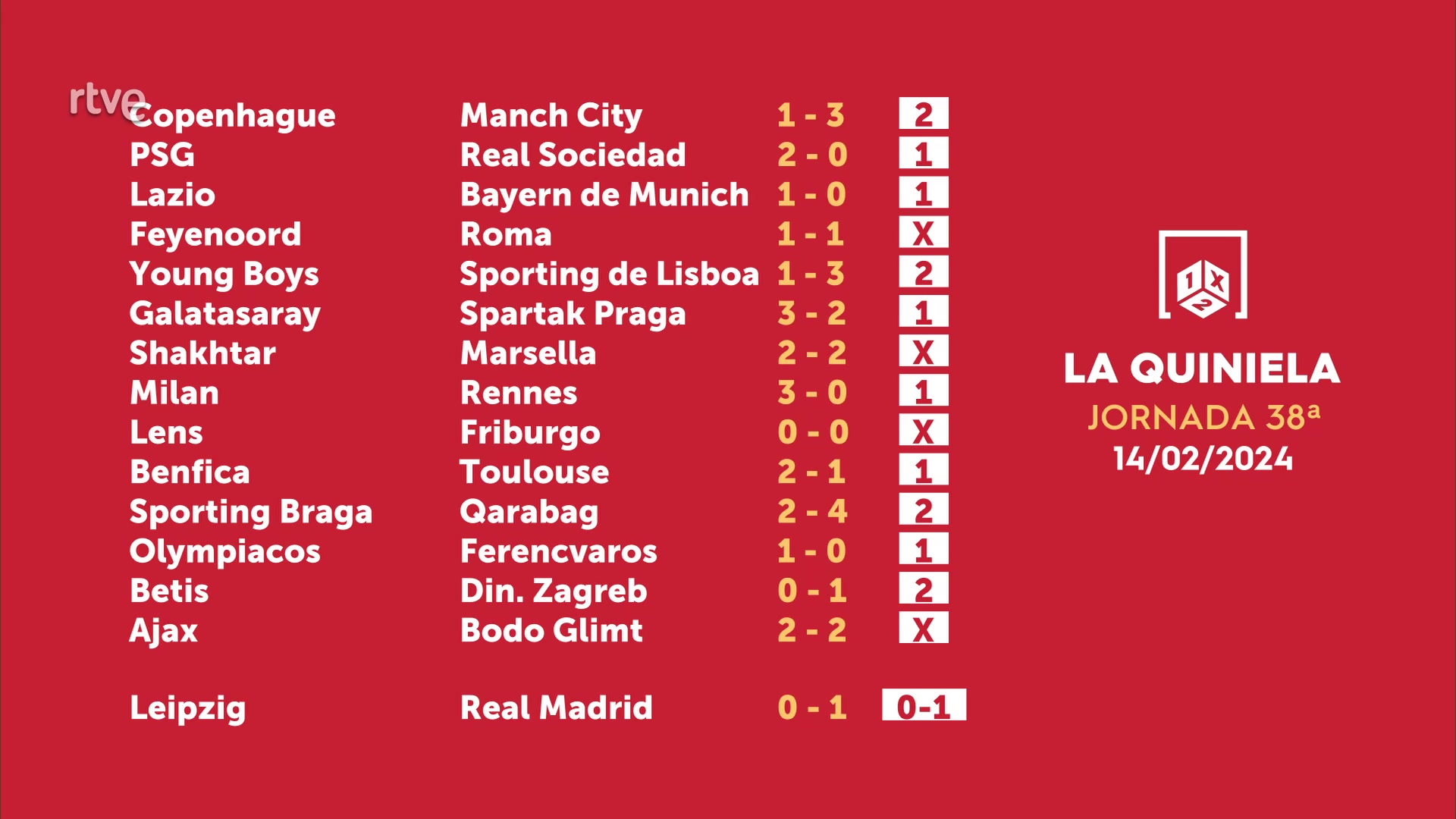 Sorteo de la Quiniela del 16/02/2024 - Jornada 38