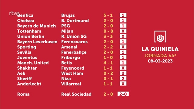 Sorteo de la Quiniela del 10/03/2023 - Jornada 44