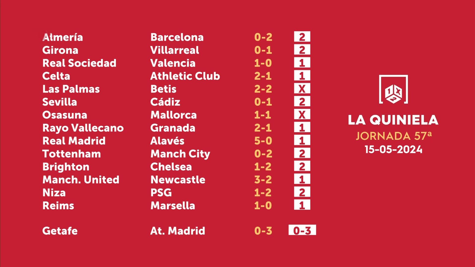 Sorteo de la Quiniela del 17/05/2024 - Jornada 57