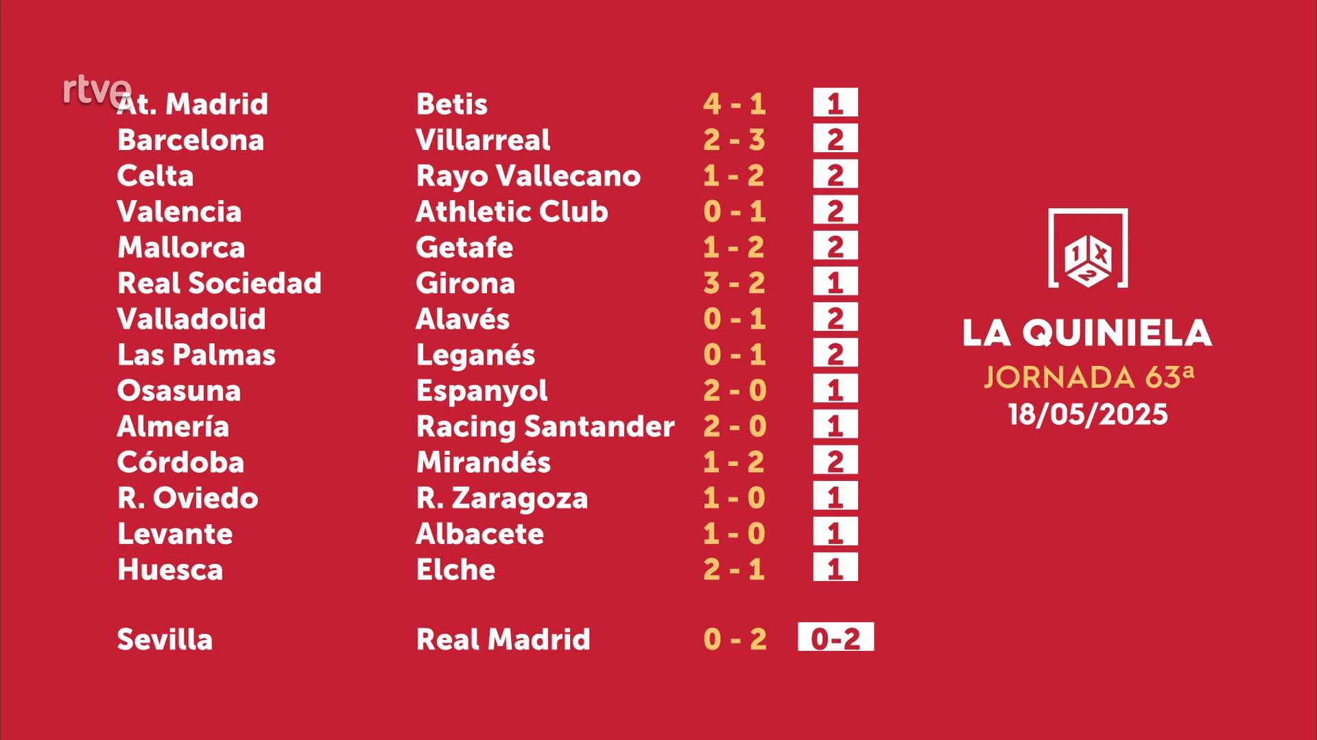 Sorteo de la Quiniela del 20/05/2025 - Jornada 63