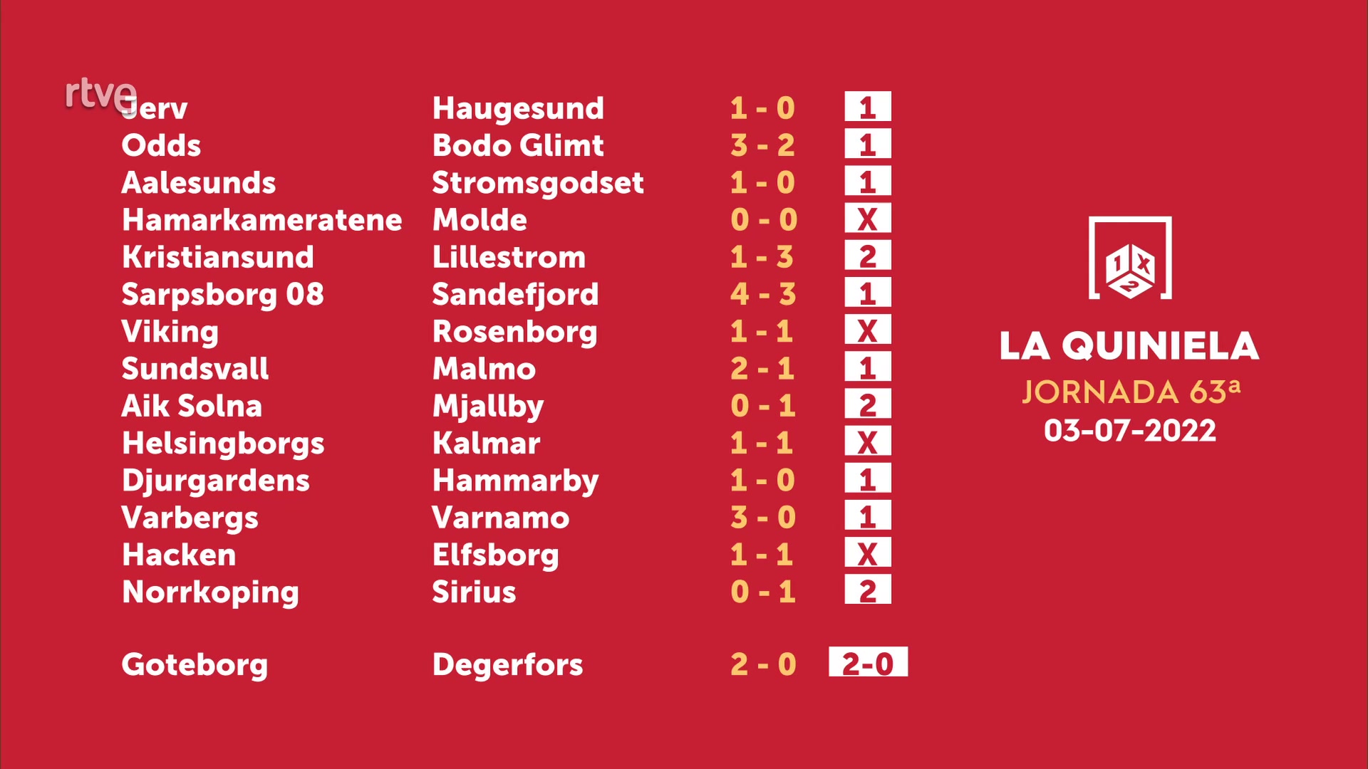 Sorteo de la Quiniela del 05/07/2022 - Jornada 63