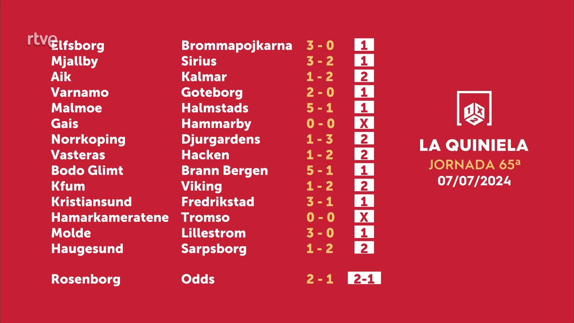 Sorteo de la Quiniela del 09/07/2024 - Jornada 65