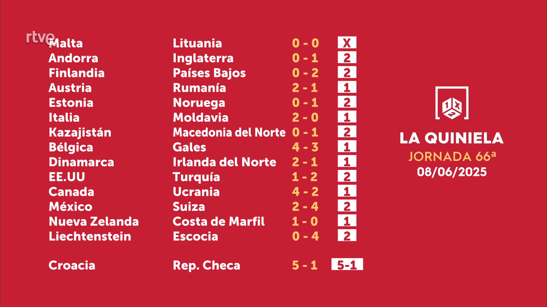 Sorteo de la Quiniela del 10/06/2025 - Jornada 66