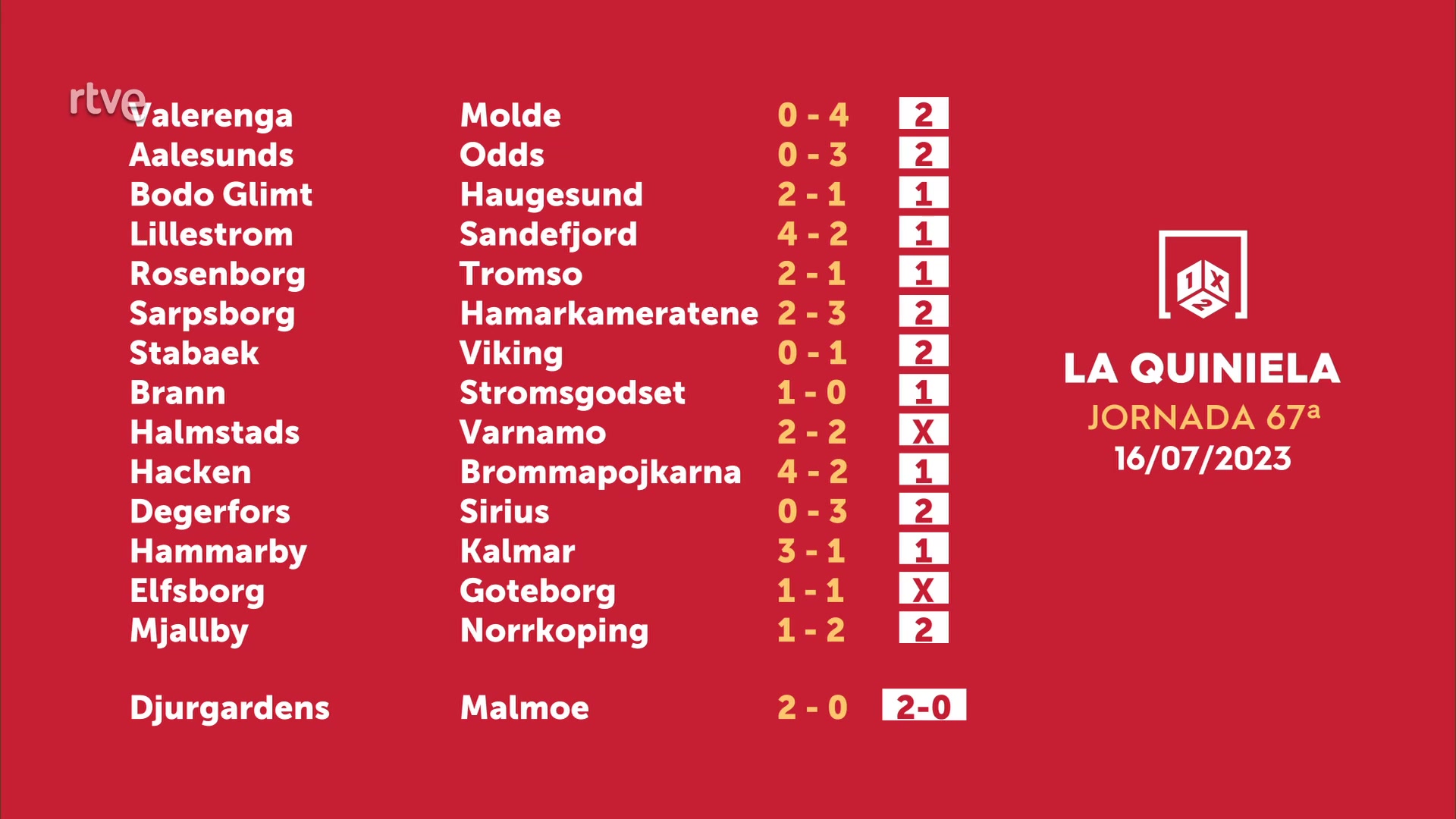Sorteo de la Quiniela del 18/07/2023 - Jornada 67