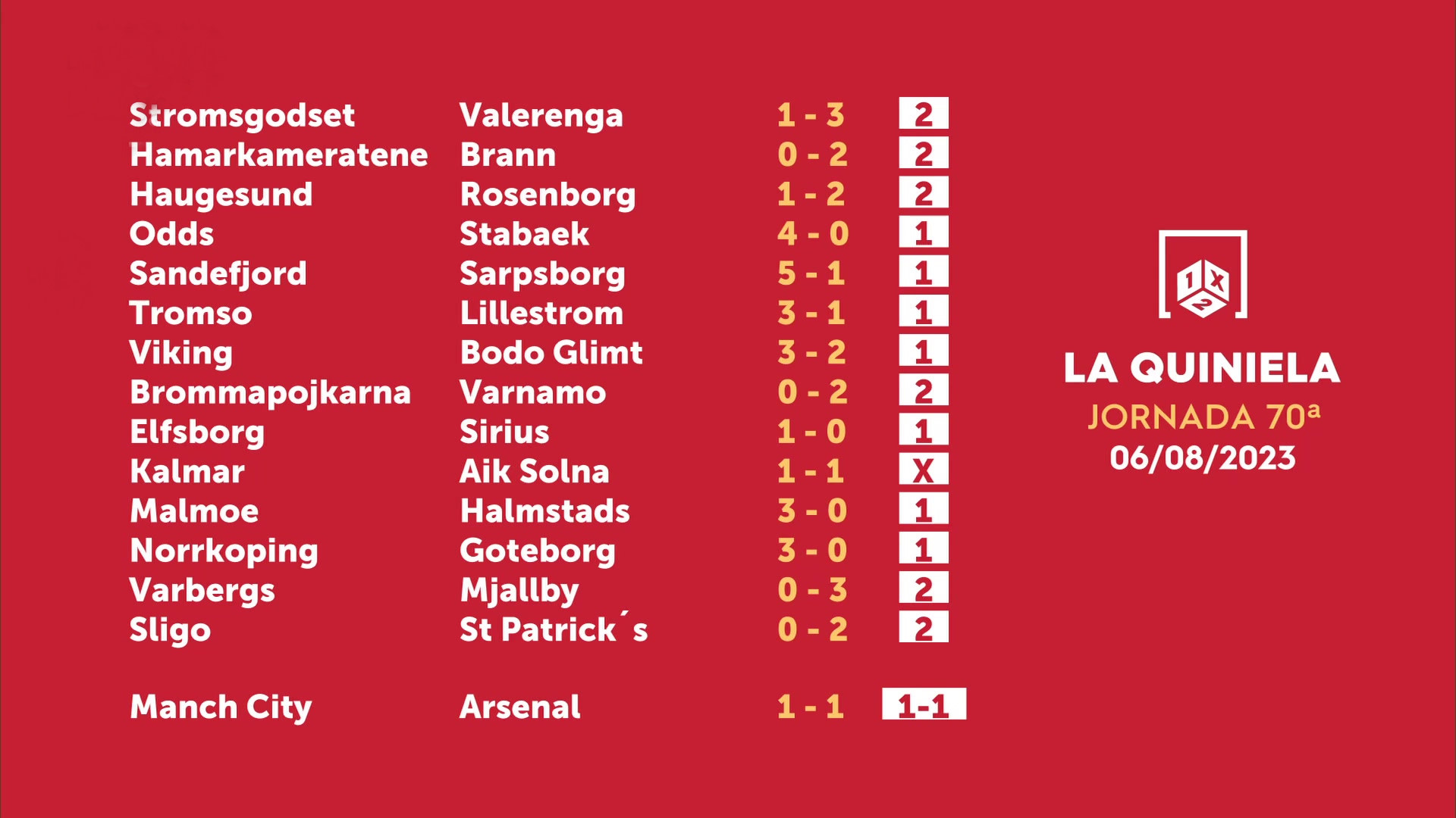 Sorteo de la Quiniela del 08/08/2023 - Jornada 70