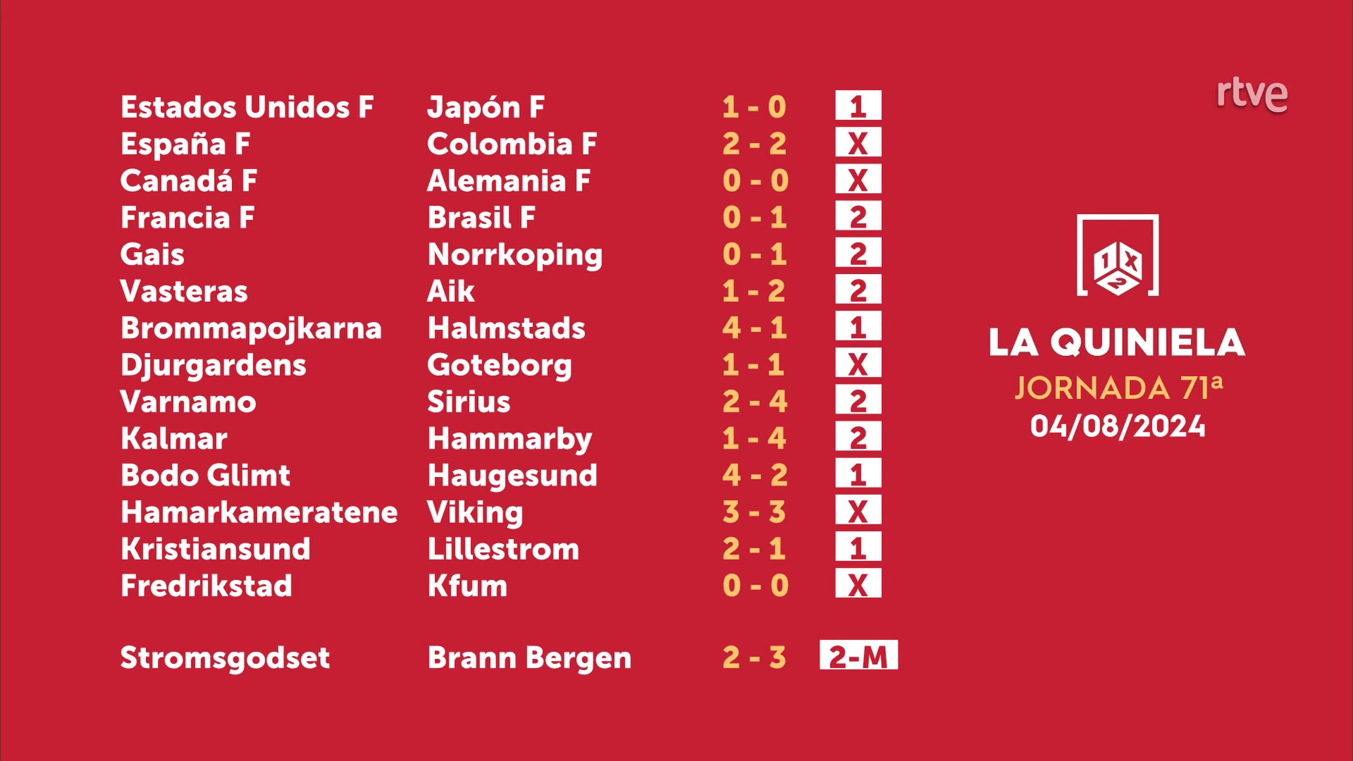 Sorteo de la Quiniela del 05/08/2024 - Jornada 71
