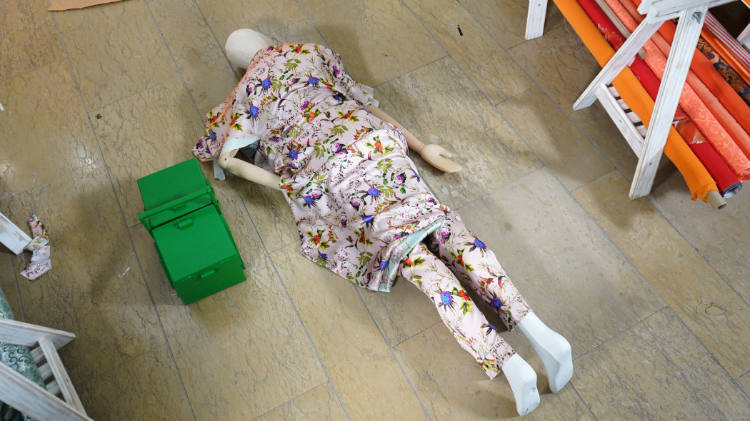 Isabel, Borja, Eduardo y Lili no han conseguido terminar de colocar su prenda a tiempo sobre el maniquí y este se ha caído al suelo.