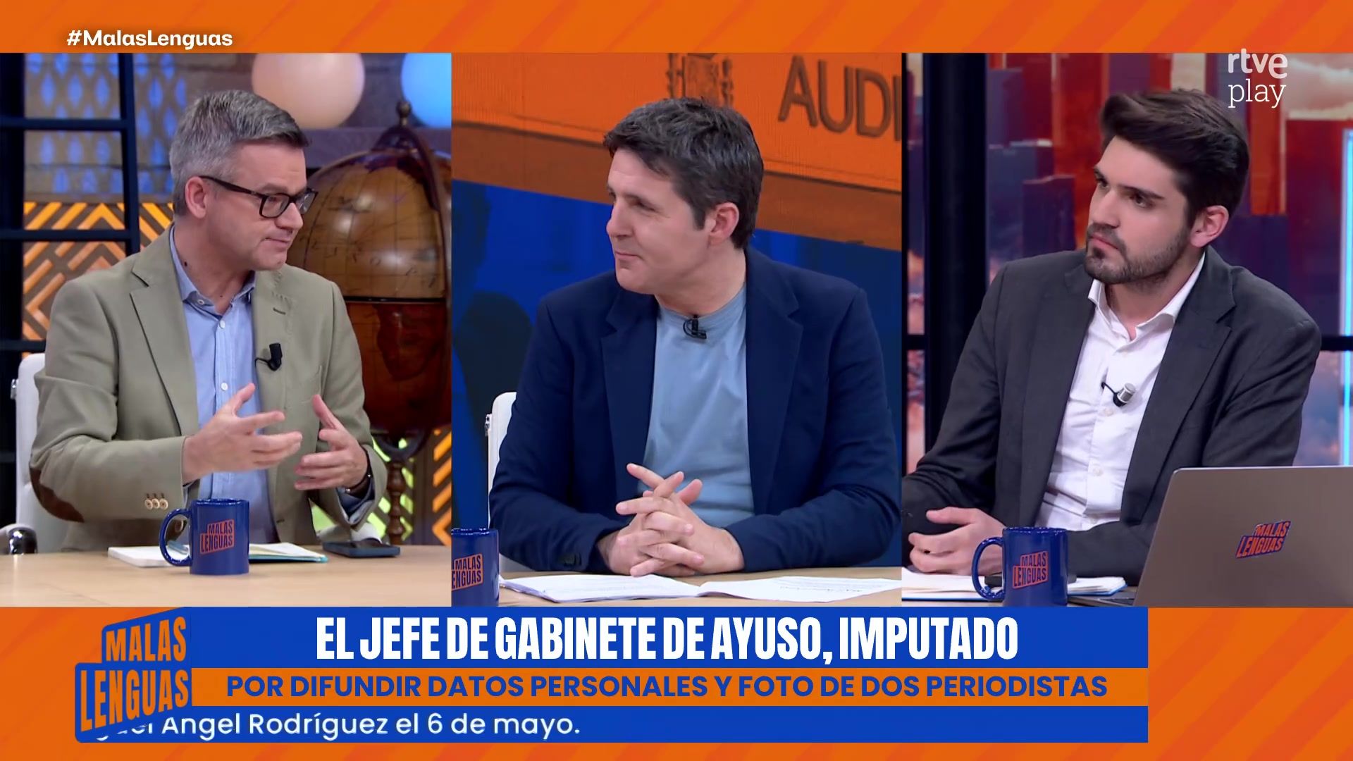 13/03/2026 02:34:06El jefe de gabinete de Ayuso, Miguel Ángel Rodríguez, citado a declarar ante la jueza como querellado por difundir datos de dos periodistas de El País; La Casa Blanca difunde vídeos de sus ataques en Irán como si fuesen un videojuego; Garamendi defiende que cuando una empresa despide a alguno de sus trabajadores “no es porque el empresario disfrute despidiendo a nadie”; El huevo es el producto que más se ha encarecido en el último año; muere un hombre en Alicante mientras estaba asomado en su balcón por una bala perdida de un tiroteo. Todos estos temas y muchos más hoy en Malas Lenguas con Jesús Cintora y Manuel Rico, Naiara Pinedo, Sarah Santaolalla, Chema Garrido, May Mariño, Hugo Pereira, José Miguel Villarroya, Patricia Suárez, paloma López, José Trigueros y Mercedes Bermejo.