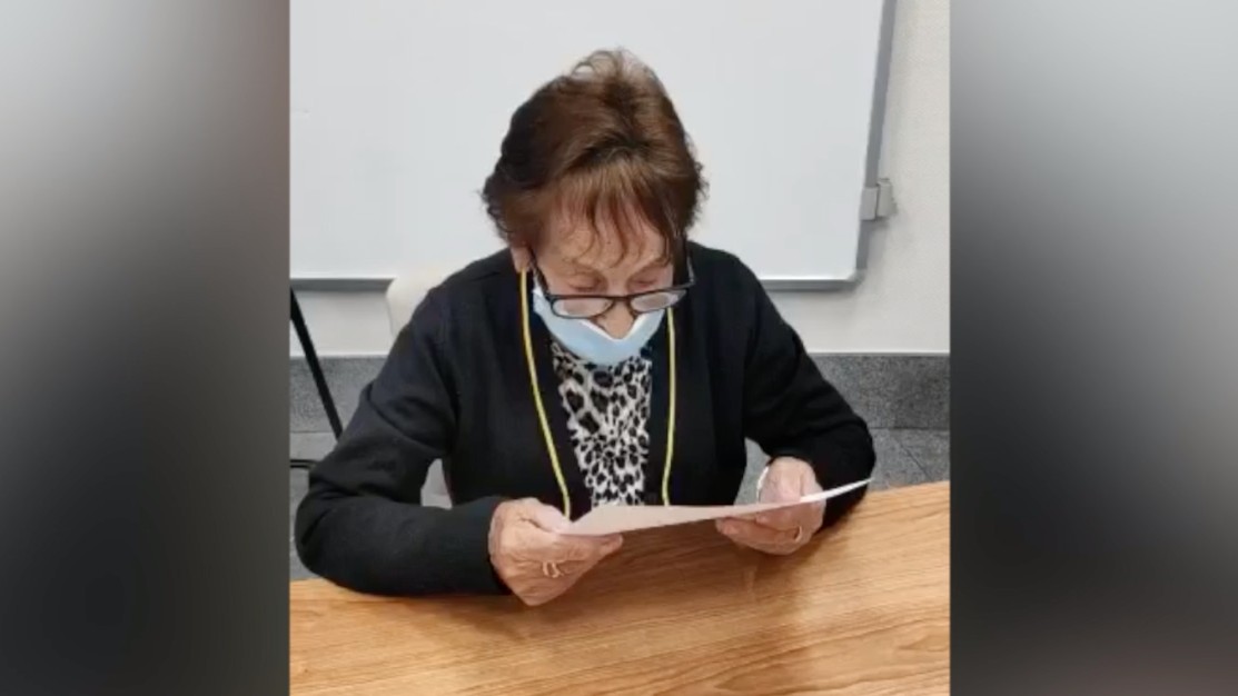 18/12/2020 00:02:20Hipólita, una anciana que vive en una residencia madrileña, lee la carta que ha escrito una joven para felicitarle la Navidad en el marco de la...