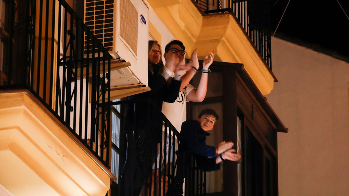 Aplausos y gritos de "viva" por el trabajo de los profesionales sanitarios en la gestión del coronavirus.