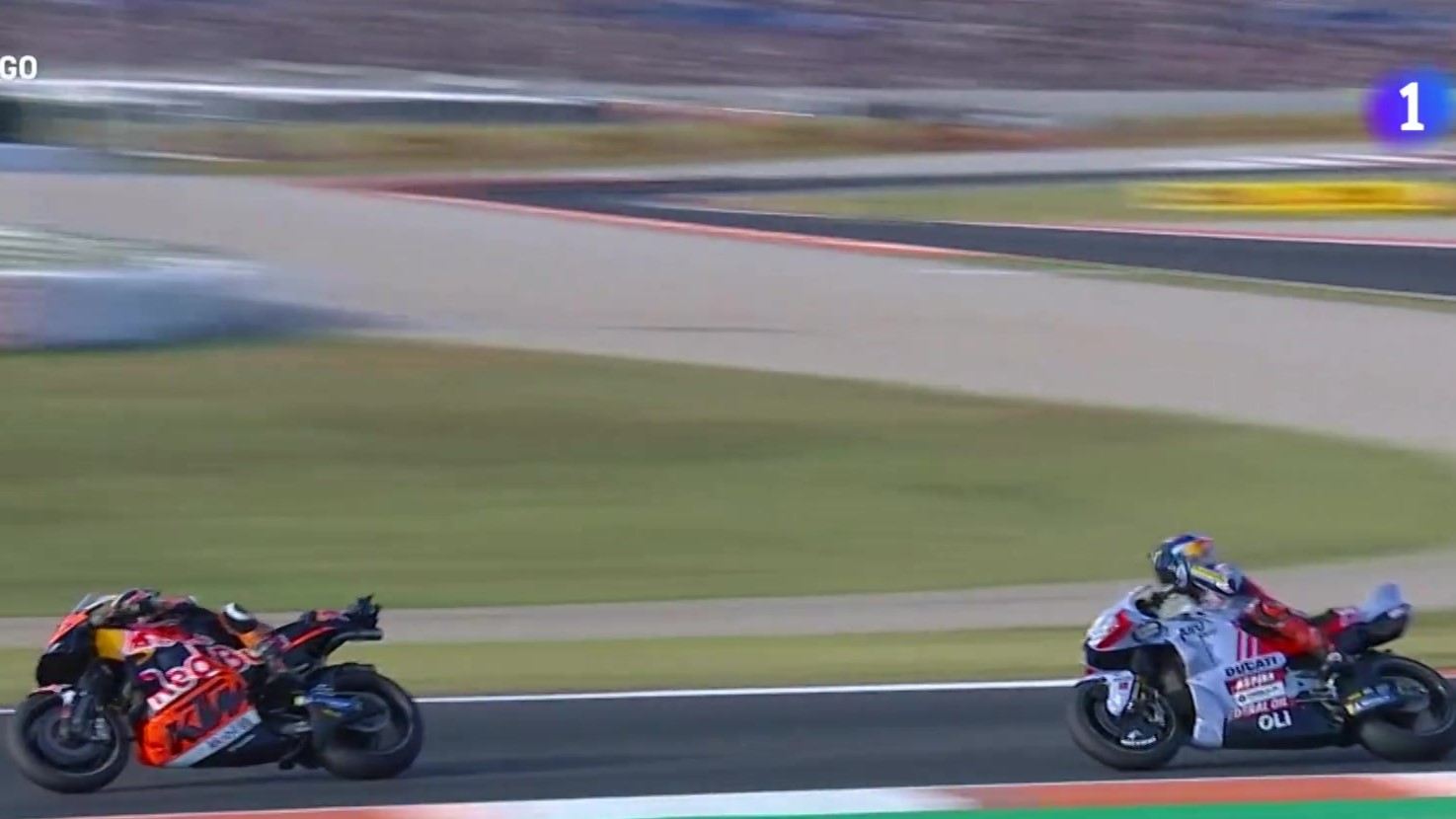 El piloto español Álex Márquez (Ducati, Gresini Racing) se ha mostrado ante TVE muy enfadado tras la carrera de MotoGP del GP de Valencia. A falta de 12 vueltas para el final, él y el sudafricano Brad Binder (KTM) se tocaron y el de Cervera fue claro: "Me ha sacado, ha entrado recto contra mí".